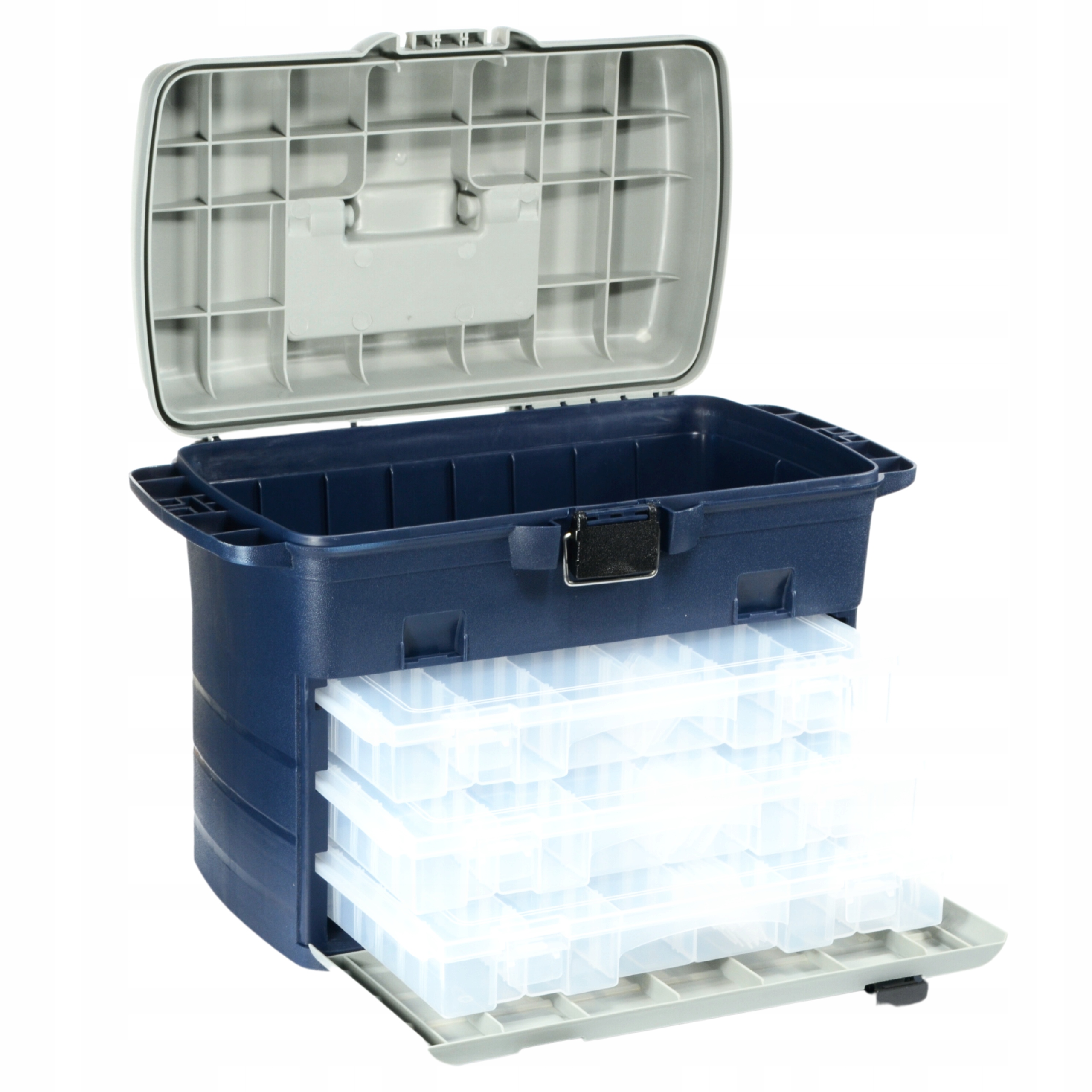 Niezastąpiona uniwersalna, pojemna jak i praktyczna- skrzynka - pozwoli nam na rozmieszczenie wędkarskiego ekwipunku według indywidualnych potrzeb.
