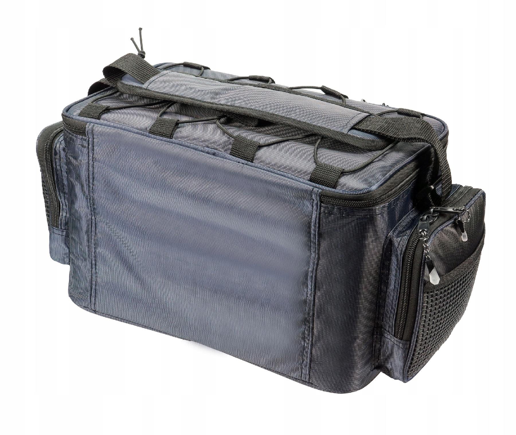 Pojemna i poręczna torba wędkarska, wykonana z trwałego materiału.